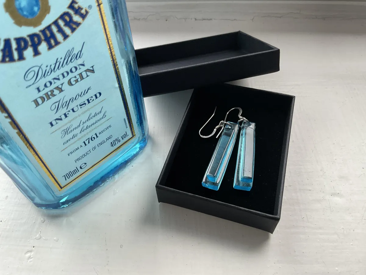 Bombay Sapphire Gin Bottle Upcyled Glass Earrings