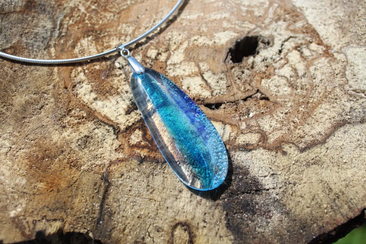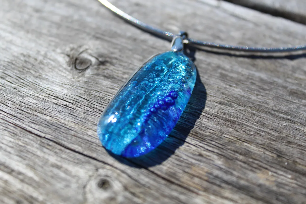 Each pendant is a tiny slice of paradise, handcrafted by me and my trusty furry apprentice, Sparrow, who mostly supervises by napping through production. Inspired by everything not in Lytham St Annes, these beauties range from delicate shoreline blues and frothy greens to the riotous coral chaos of a tropical reef. And for the drama queens among us, we’ve got darker, moodier designs featuring bubble-like details straight out of the deep sea.